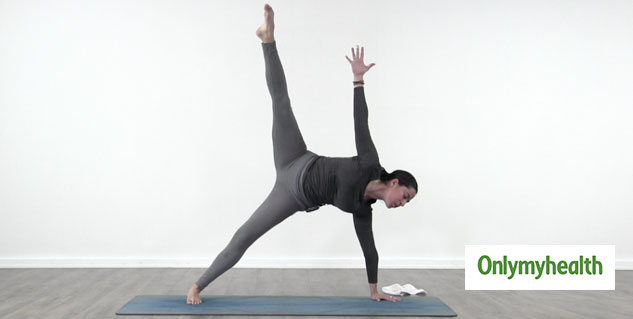It is a variation of side plank which reduces side fat. First get in side plank position, once you are properly balanced stack one foot on top of the other and raise your arm upwards. Now lift the leg on the top upwards. Hold this pose for a while and then return to the starting position. Repeat this exercise 15 times for each side.