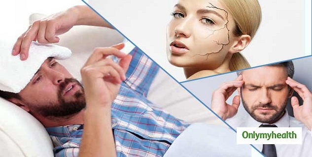 डिहाइड्रेशन होने पर शरीर में पानी की कमी होने के कारण व्यक्ति की त्वचा रूखी हो जाती है और होंठ फटने लगते हैं। यानी होठों का फटना या त्वचा पर सफेद रेखाएं डिहाइड्रेशन का संकेत हो सकती हैं। कई बार त्वचा पर लाली भी छा जाती है।