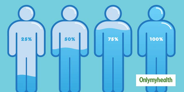 शरीर में पानी की कमी होने पर हाथ के अंगूठे से पैर के ऊपरी और निचले हिस्से को दबाएं। अंगूठा हटाने के कुछ सेकेंड बाद तक वो जगह सफेद रहती हैं तो आपके शरीर में पानी की कमी है। पानी की कमी होने पर घुटने और टखने में सूजन सी दिखायी देती है।