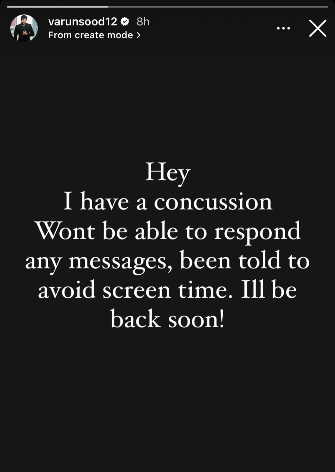 वरुण ने अपने इंस्टाग्राम हैंडल पर लिखा कि वे मैसेज का जवाब नहीं दे पाएंगे क्योंकि उन्हें स्क्रीन पर देखने की सलाह नहीं दी गई है। उन्होंने यह भी लिखा कि जल्दी ही वापसी करूंगा। यह सुनकर फैंस वरुण के लिए काफी इमोश्नल हो गए। हालांकि, अभी तक इस बात का खुलासा नहीं हो पाया है कि वरुण को ब्रेन इंजरी कैसे हुई।