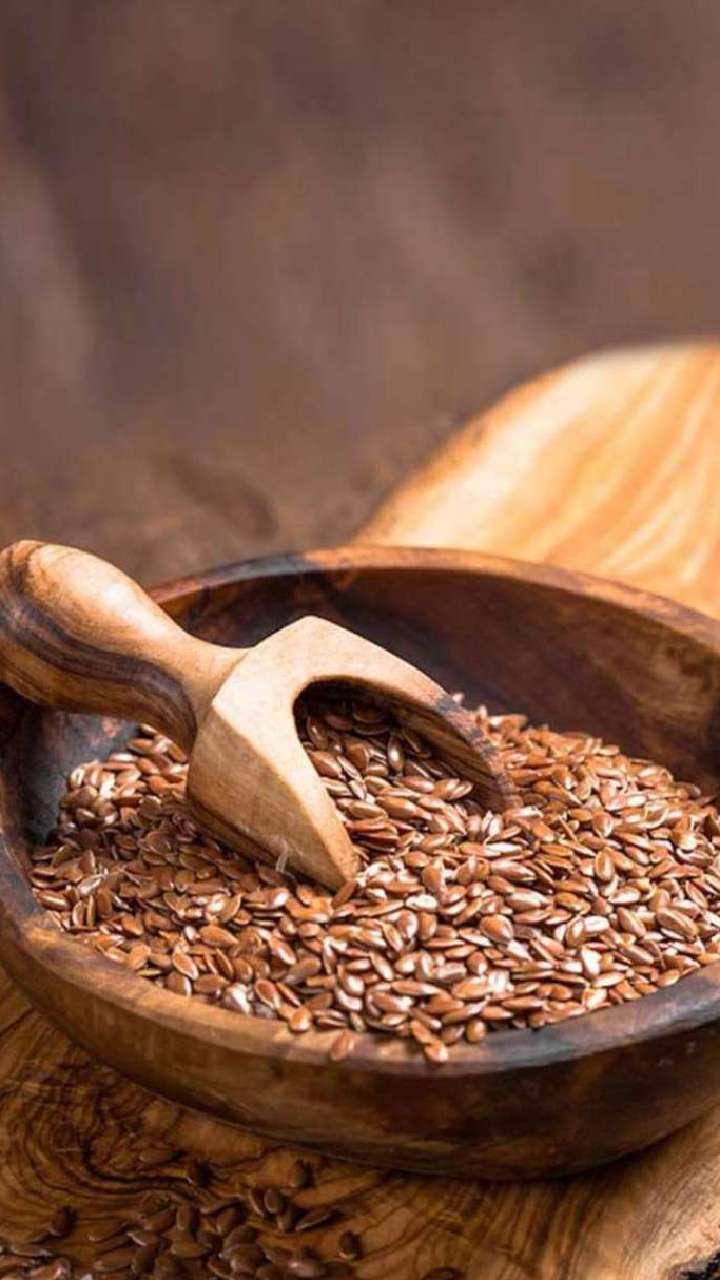अलसी के बीज में भरपूर मात्रा में ओमेगा-3 फैटी एसिड, विटामिन-ई और बायोटिन पाए जाते हैं। इसमें ओमेगा-3 स्कैल्प को पोषण देने के साथ बालों की ड्राईनेस को दूर करने में मदद करता है। वही विटामिन-ई और बायोटिन बालों को जड़ों से मजबूती देने और बालों को शाइन देने में मदद करता है।