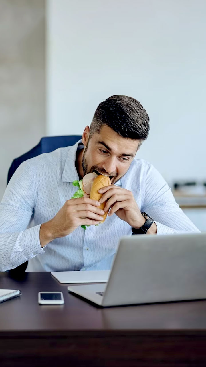कई बार काम ज्यादा होने पर लोग काम करने के साथ ही डेस्क पर खाना खाते हैं। खाना खाते वक्त ध्यान दूसरी जगह होने पर मेटाबॉलिज्म धीमा पड़ सकता है और वजन बढ़ सकता है।
