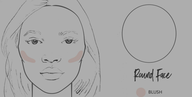 Do not use a highly reflective blusher on your face as it will reflect the light and will make your face look even rounder. Try and opt for a matte blush instead.