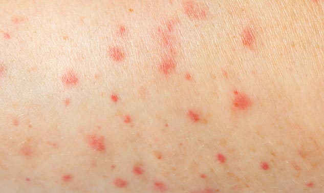 8 - प्रभावित स्थान पर फोड़े की आकृति का दाना निकलना।