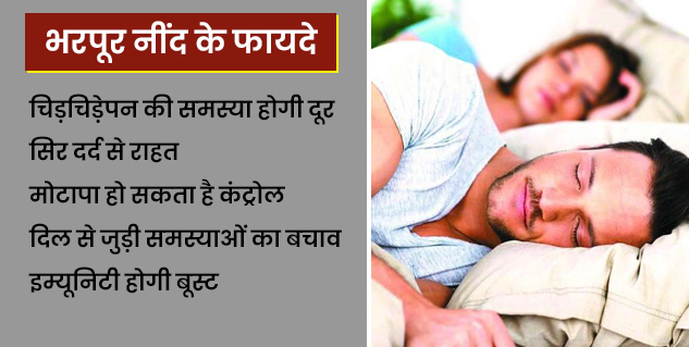 आयुर्वेद के मुताबिक, अगर आप अच्छी नींद नहीं लेते हैं, तो इससे कई तरह की समस्याएं हो सकती है। जैसे- चिड़चिड़ापन, एनर्जी में कमी, आलस होना हो सकती हैं। इसलिए बॉडी को एनर्जेटिक बनाए रखने के लिए भरपूर नींद की आवश्यकता होती है। अगर आप भरपूर नींद लेते हैं, तो इससे आपकी बॉडी खुद-ब-खुद अच्छे से डिटॉक्स हो सकती है।