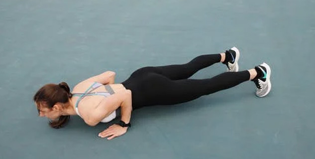 - पुशअप्स करने के लिए अपने हाथों को कंधों से थोड़ा चौड़ा करके फर्श पर रखें और अपने पैरों को पीधे की ओर सीधा रखें।