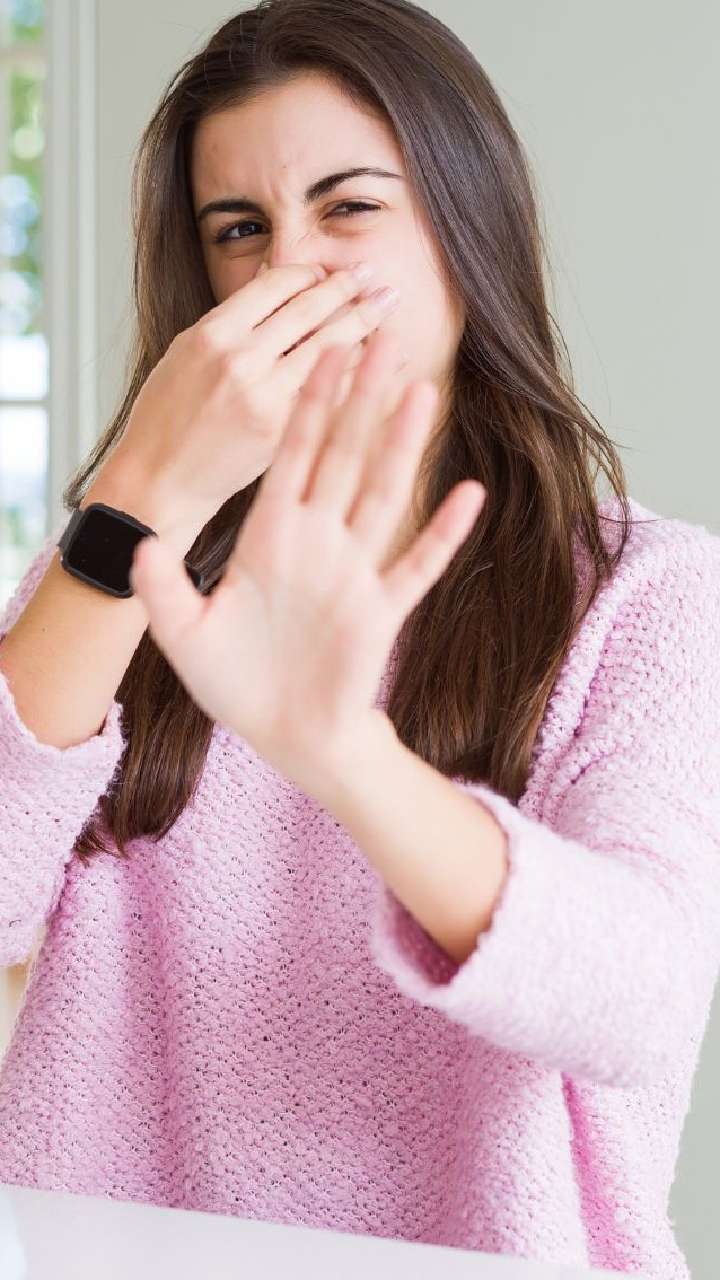 Take some fresh coriander leaves with a pinch of salt before leaving your house. This will reduce odour-causing mouth bacteria.