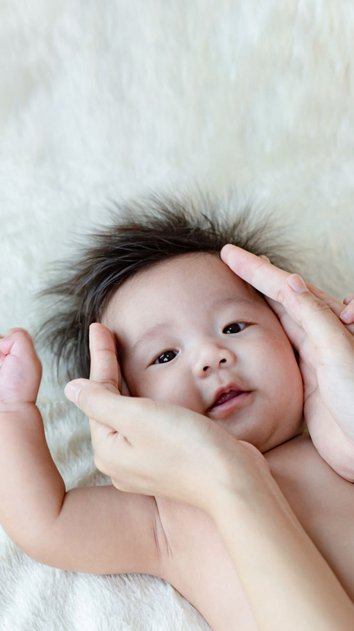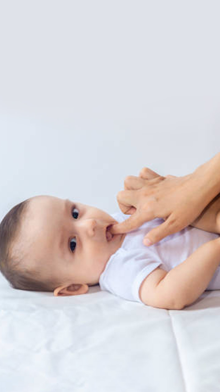 Teething can also cause pain to the baby's cheeks and ears. Massage the face gently in circular motion to ease teething pain.