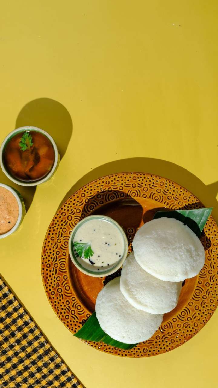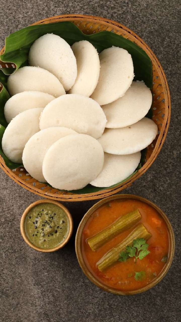 The steamed rice and idli lentils provide a balanced carbohydrate source for sustained energy.
