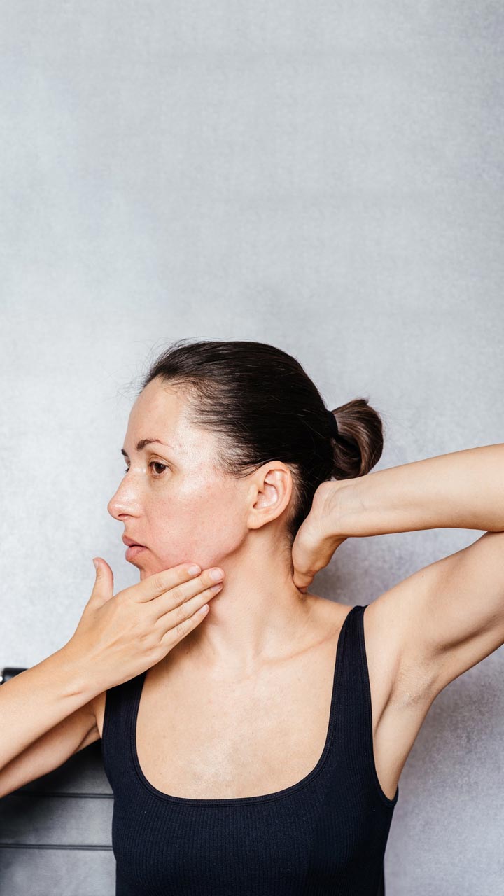 This exercise targets the muscles in your neck to tone your jawline. Simply lay down in a comfortable position and press your tongue to the roof of your mouth.