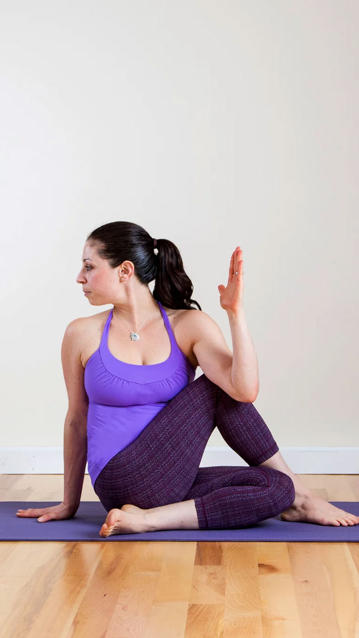 Seated twist stretch effectively relaxes your back muscles and avoids a stiff back. It is an easy exercise that can be performed anywhere.