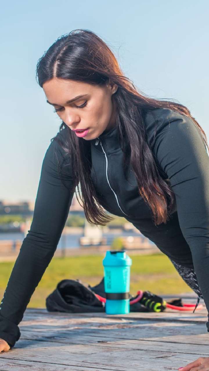 Get in a high plank position and try to touch your shoulder with the opposite palm. This helps to tone your upper body.