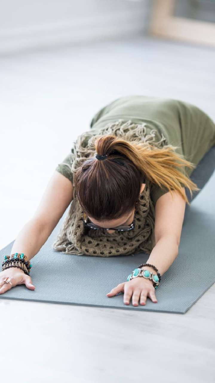 Try practising the child's pose, the forward fold, or the downward dog. These positions may aid in calming the body and can also boost blood flow to the head.