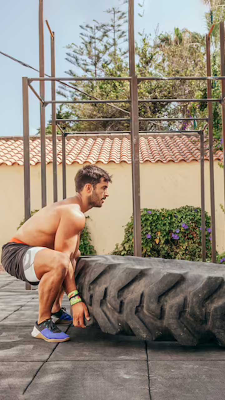 As the name implies, you flip a massive tyre in a domino-like fashion until you're exhausted.