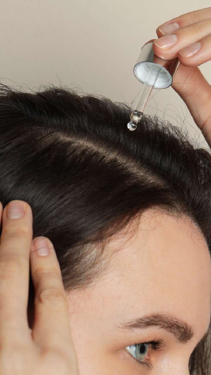 Massage the tonic with your fingertips onto your scalp while distributing it along the length of your hair.