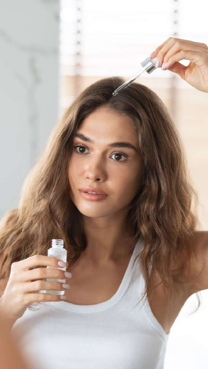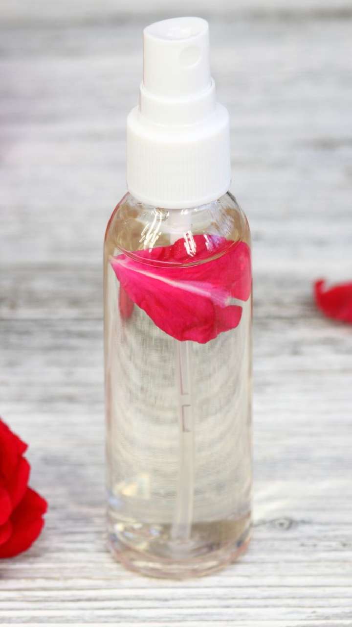 Mix half a cup of rose water with half a cup of water and 8-10 drops of lavender or tea tree essential oil. Use this as a hair mist.