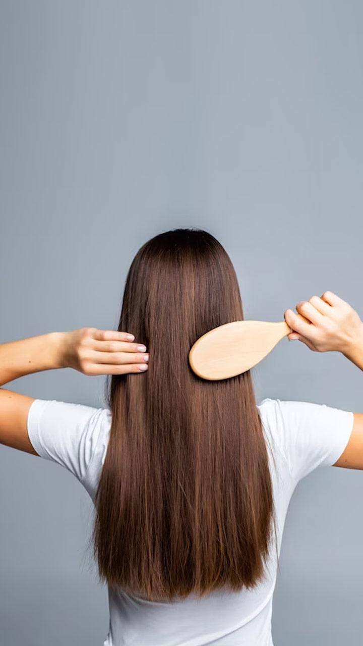 Apply a detangling spray or conditioner to your hair before combing it. This helps loosen any knots or tangles, reducing hair breakage.