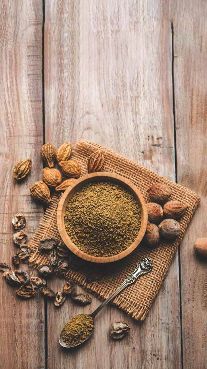 Triphala is rich in iron and potassium. It helps balance the melanin levels and promotes it in the hair.