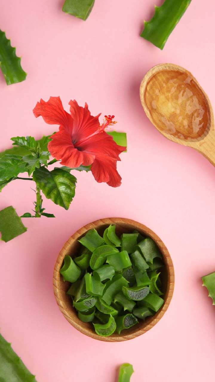 Mix hibiscus paste with aloe vera. Massage the solution onto your scalp and hair. Aloe vera and hibiscus assist with scalp healing and support hair health.