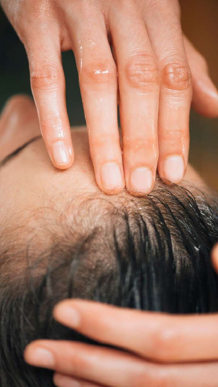 Part your hair and apply warm oil on your scalp one by one with your fingertip, ensuring that the oil gets distributed smoothly. APPLY OIL ON THE SCALP