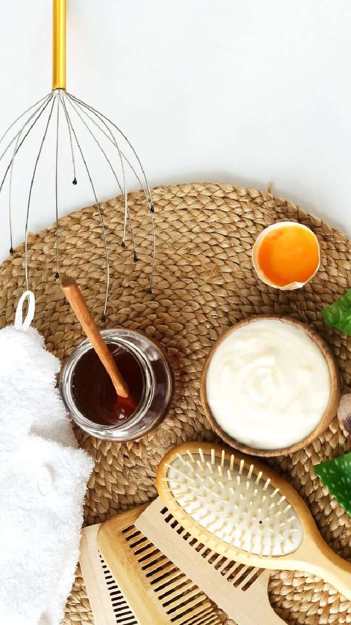 Apply a protein-rich treatment to strengthen and repair damaged hair. Eggs, yoghurt, and masks containing keratin can work wonders.