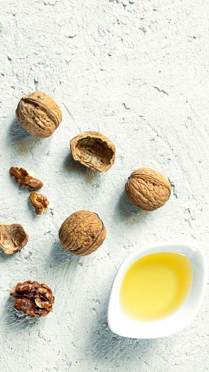 Mix walnut oil with honey and apply it to your scalp to get rid of dandruff and itchiness. It also moisturises your scalp and soothes dryness.