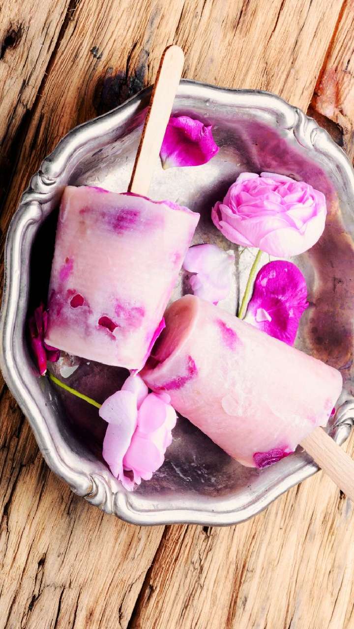 Ice cream can be a perfect dessert for summer. You can make rose petal ice cream with milk, cornflour, sugar, and dried rose petals.