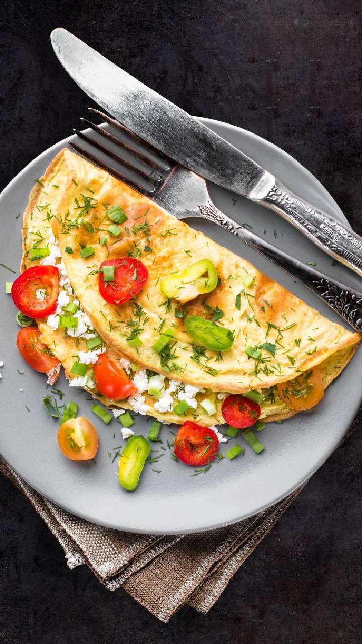 Whip egg whites with assorted cut vegetables such as tomatoes, onions and bell peppers that pack a highly protein-dense omelette.