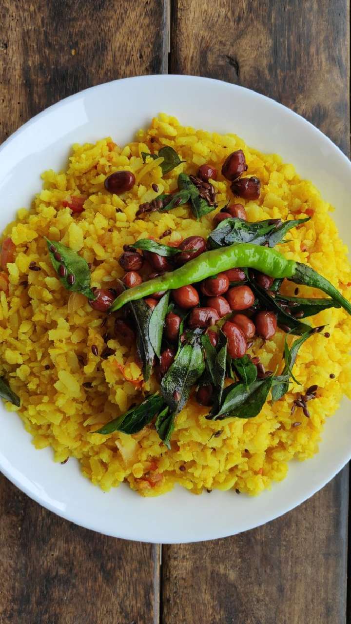 Flattened rice in poha and lemon juice with various vegetables added with spices, making it less fatty but healthy.