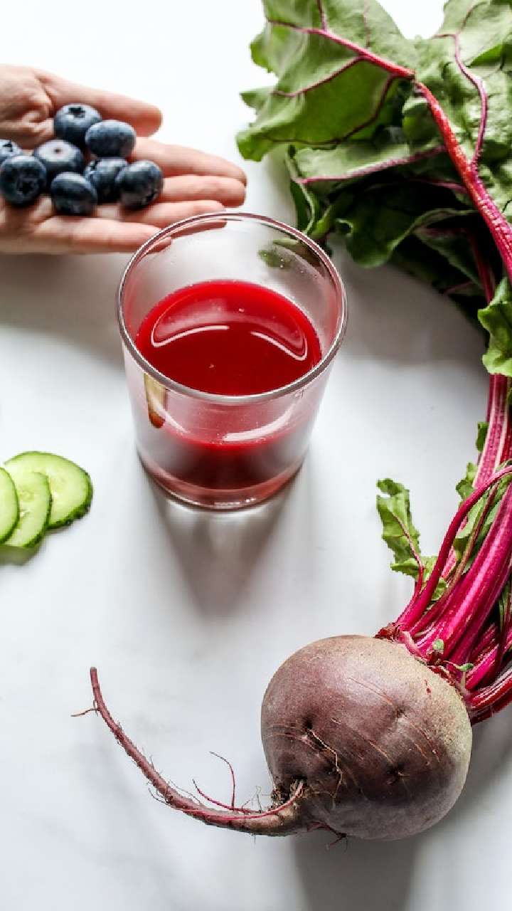 Packed with antioxidants, beetroot juice purifies the blood, supports liver function, and helps eliminate toxins, promoting a clearer complexion.