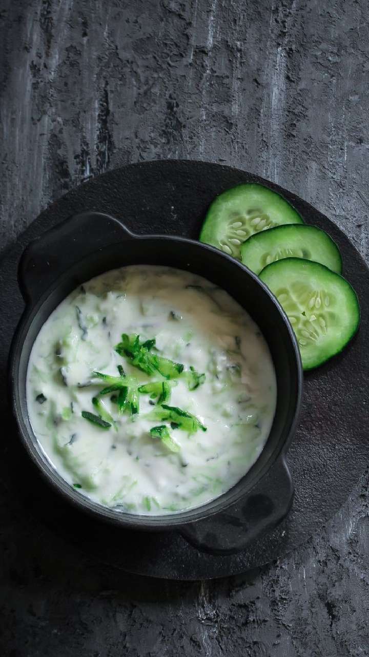 Mix grated cucumber with yoghurt, roasted cumin, chopped mint, and a pinch of salt for a cooling and tangy dip that complements any meal.