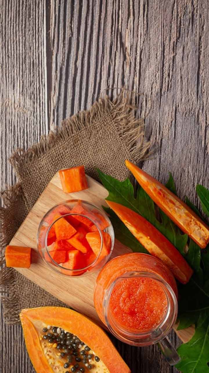 Calcium, potassium, and vitamin A are all abundant in papaya. Being a fibrous fruit, papaya helps to cleanse the stomach, alleviate constipation, and speed up bowel movements.