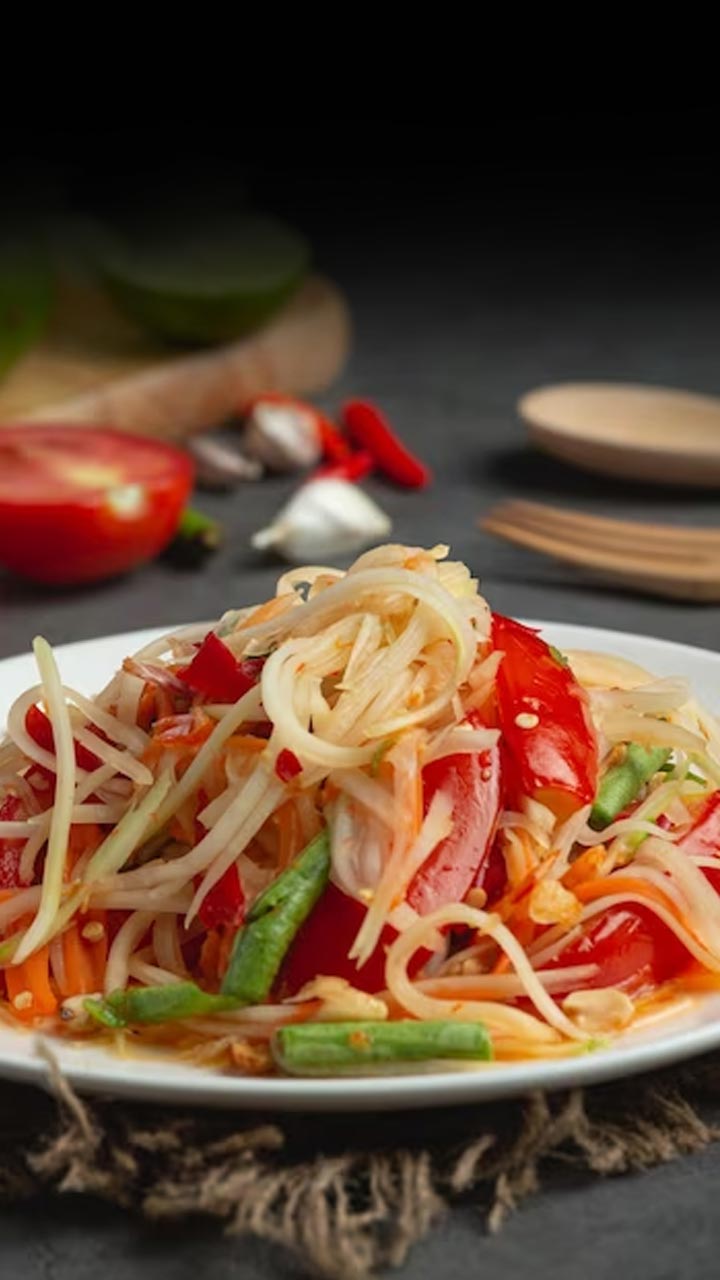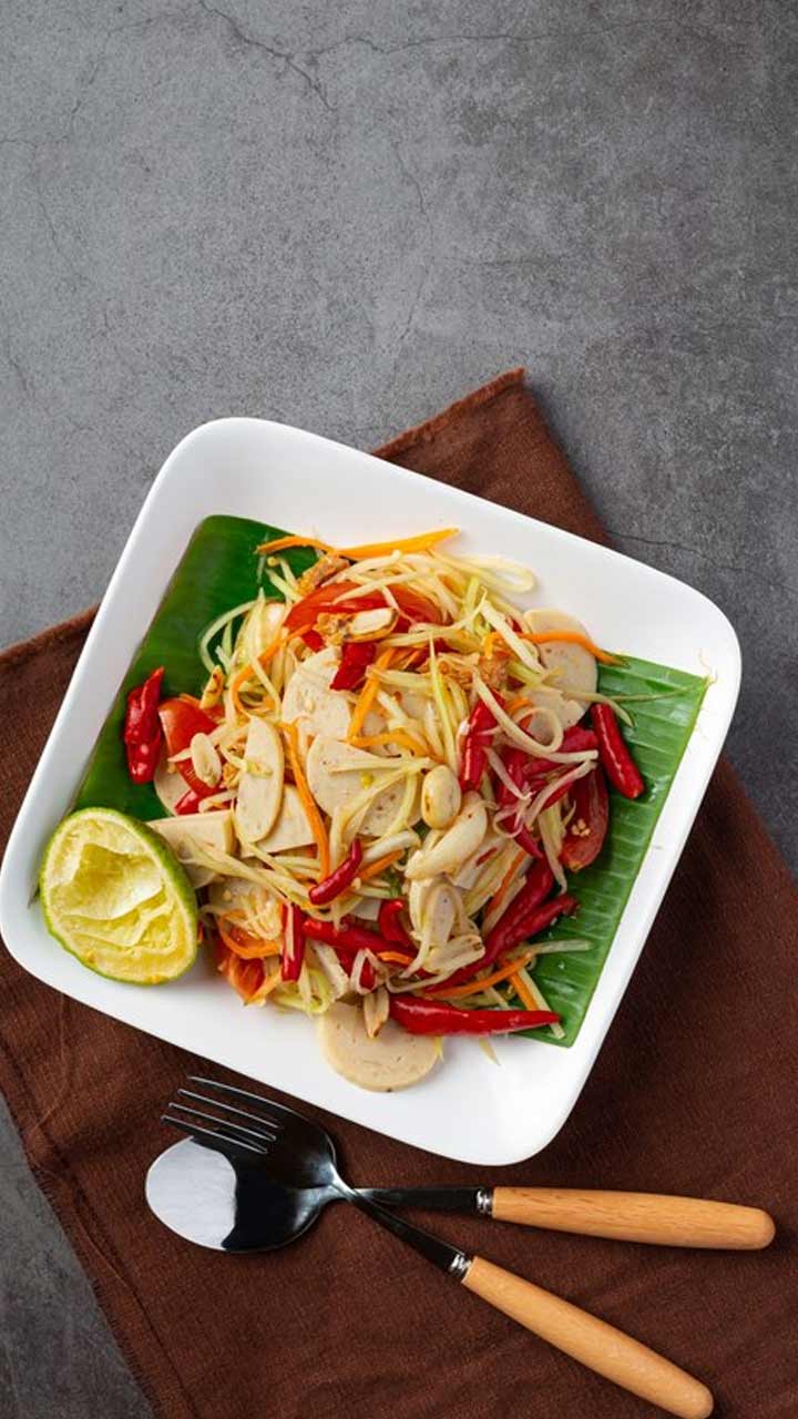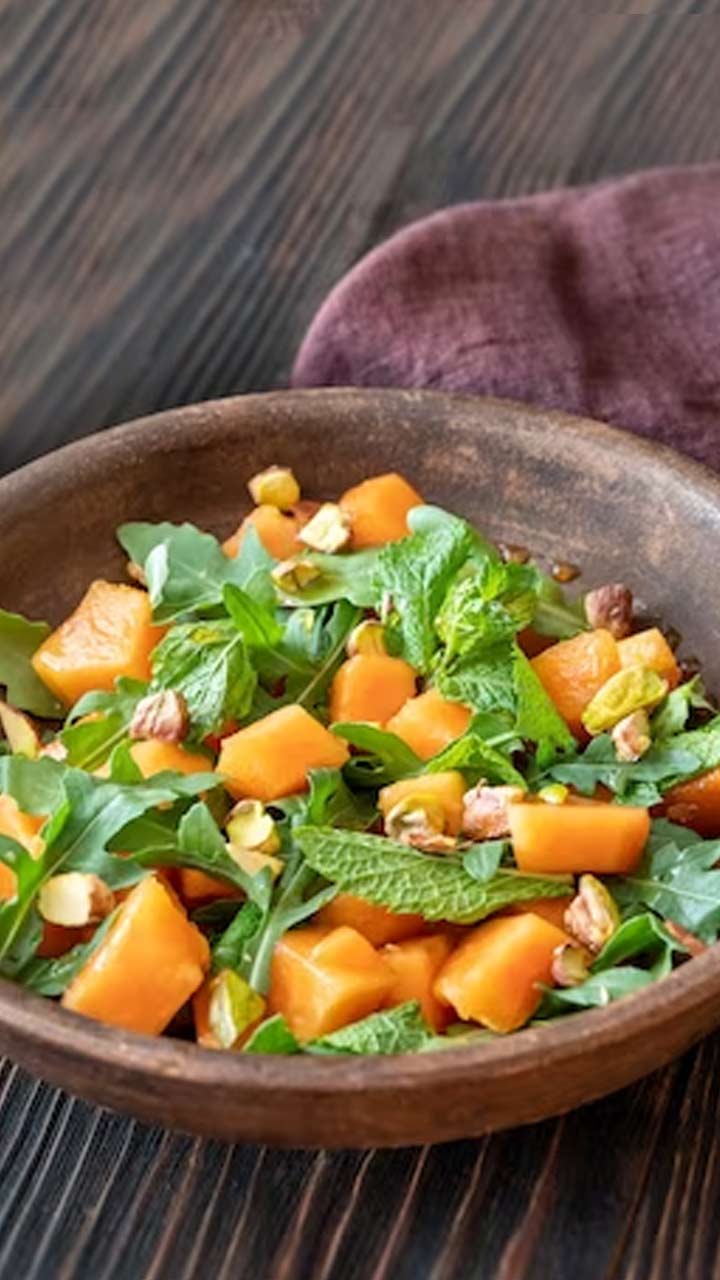 Toss together diced papaya, cucumber, red bell pepper, and mint leaves to make a papaya salad. Drizzle with a lime and honey dressing and top with chopped peanuts and you are all set.