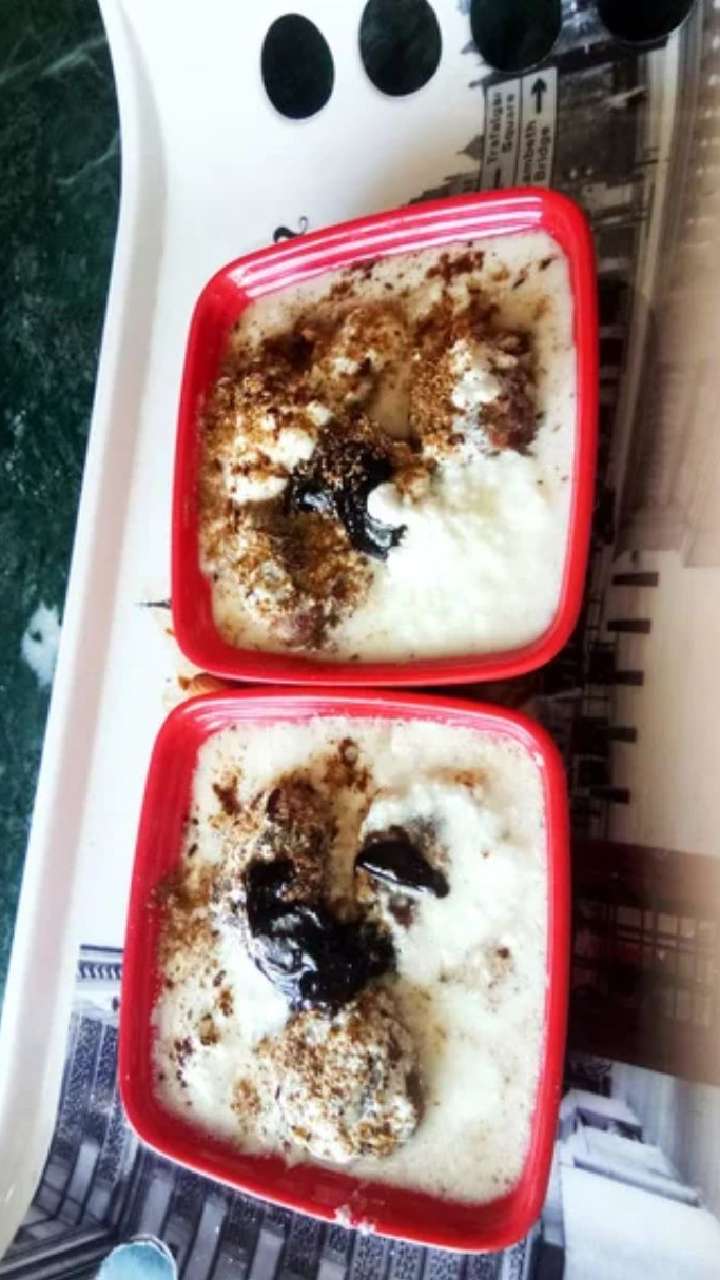 Dahi vada is a lentil-based fritter soaked in yoghurt, a protein-rich traditional delight. Drizzle with tangy tamarind chutney and spices.