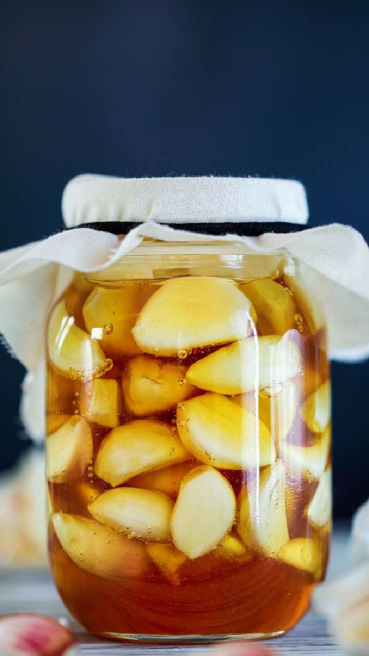 Place peeled garlic cloves in honey for several days, making a natural, sweet and powerful mixture good for immune-boosting.