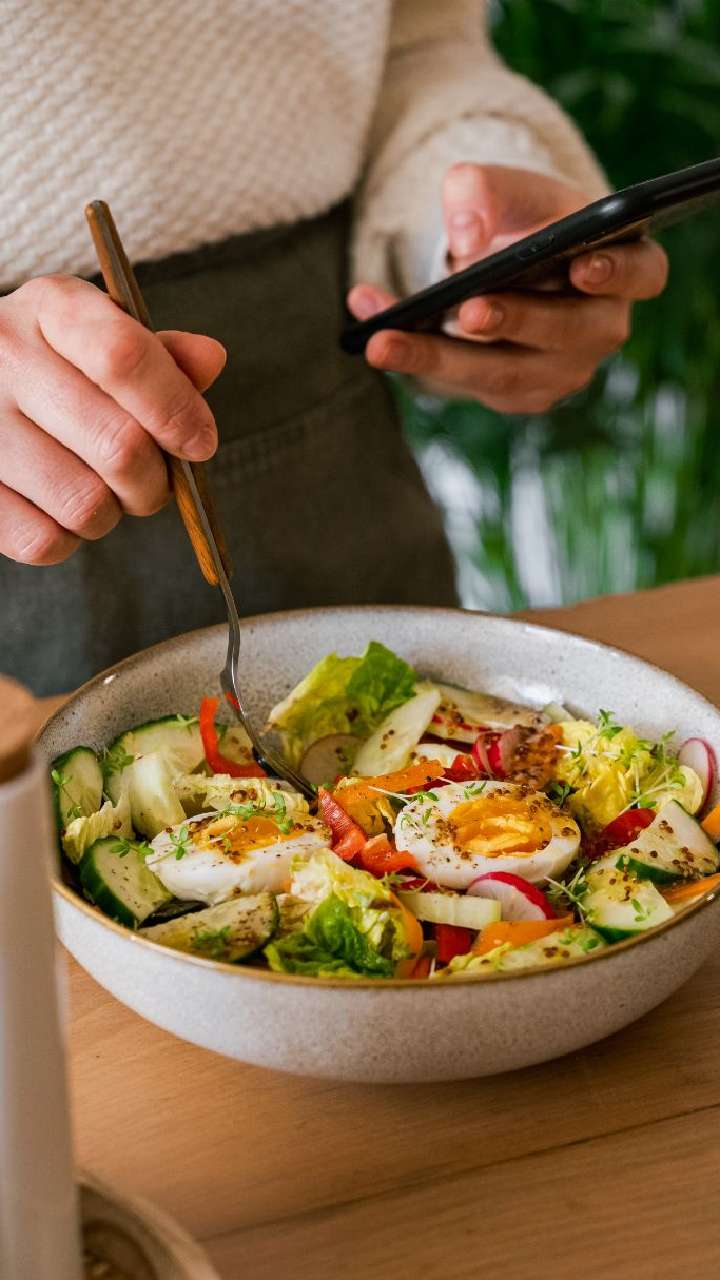 Eat slowly during meals, chew food well, and enjoy each mouthful. Eating mindfully helps with digestion and stops extra bloating.