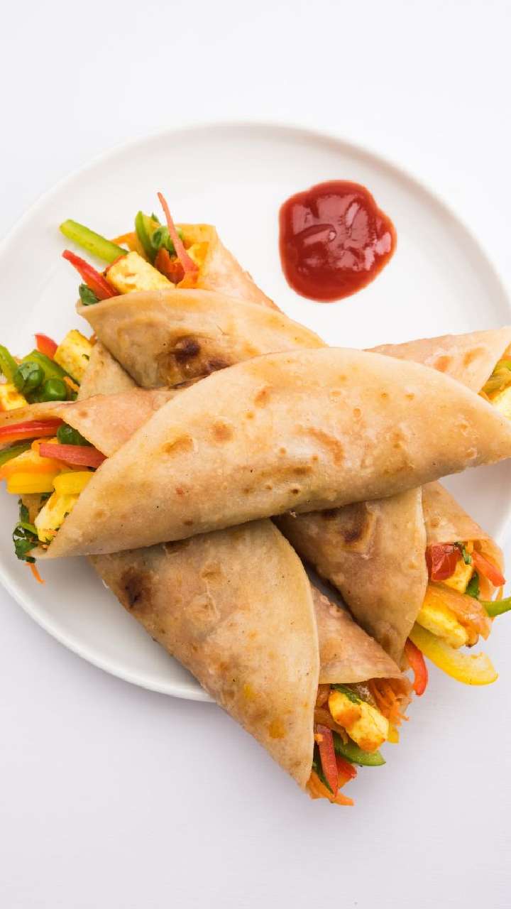 Paneer or cottage cheese is a rich source of protein in itself. For added protein, you need to prepare the wrap roll with whole wheat.