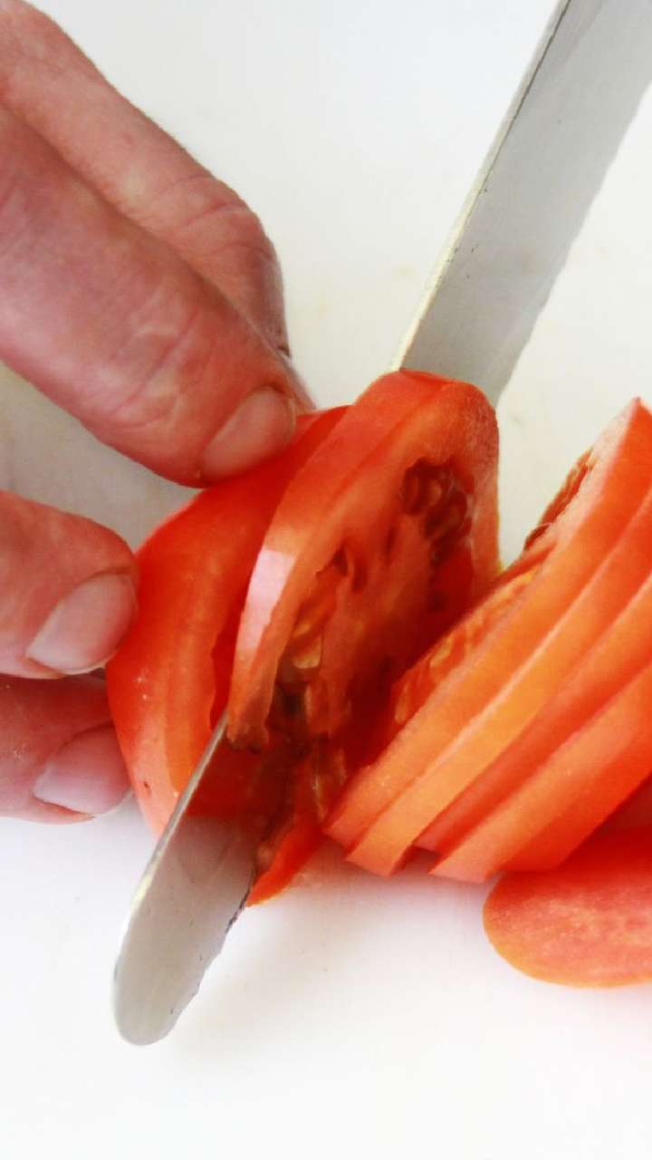Then, take veggies of your choice for toppings like lettuce, tomato, onion, etc., and slice them with the help of a knife.