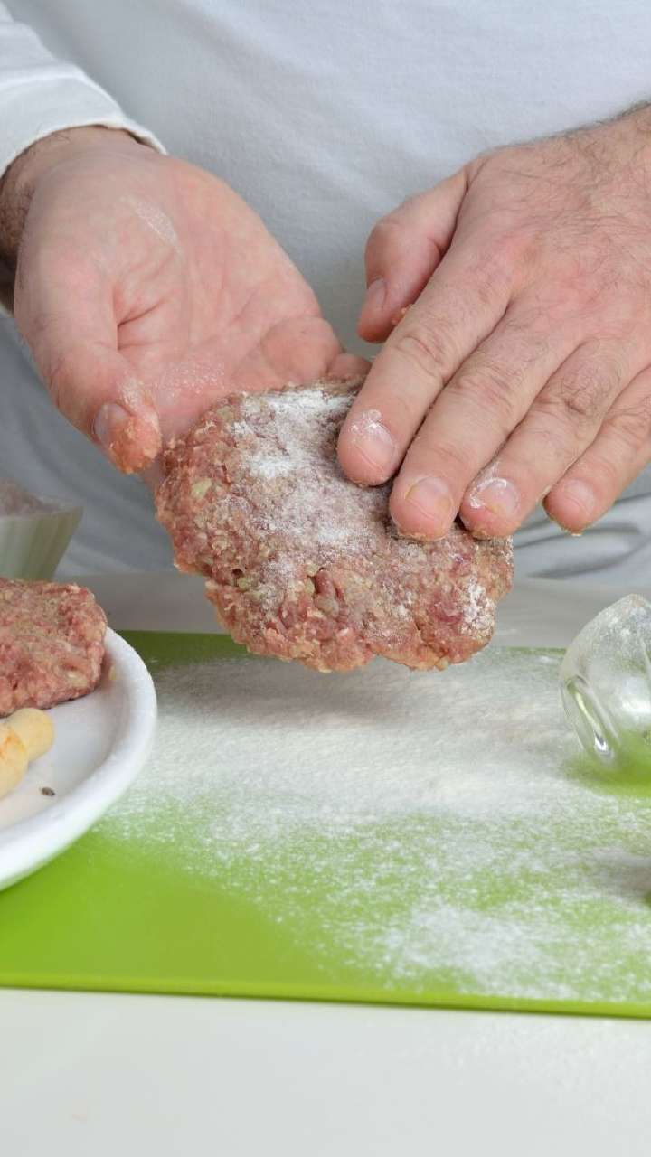 After mixing and binding all the ingredients of the paneer patty, take a small ball-like quantity and prepare the shape of the patty with your palm.