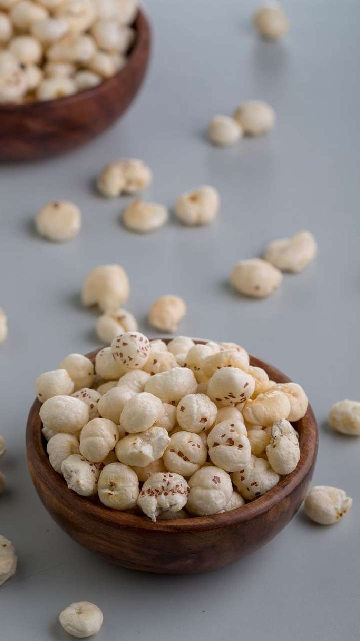 Firstly, take a pan, add one tablespoon of ghee, and roast makhana on a medium flame until they become golden brown.