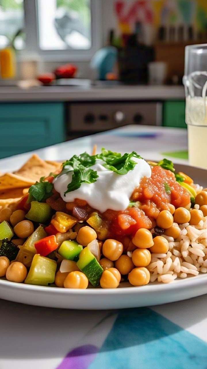 A fusion of spiced chickpeas, quinoa, salsa, and guacamole, perfect for a healthy, filling meal.
