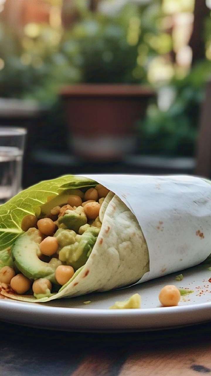 A protein-rich wrap full of spiced chickpeas, creamy avocado, and vegetables. Good for a quick bite with loads of healthy advantages.