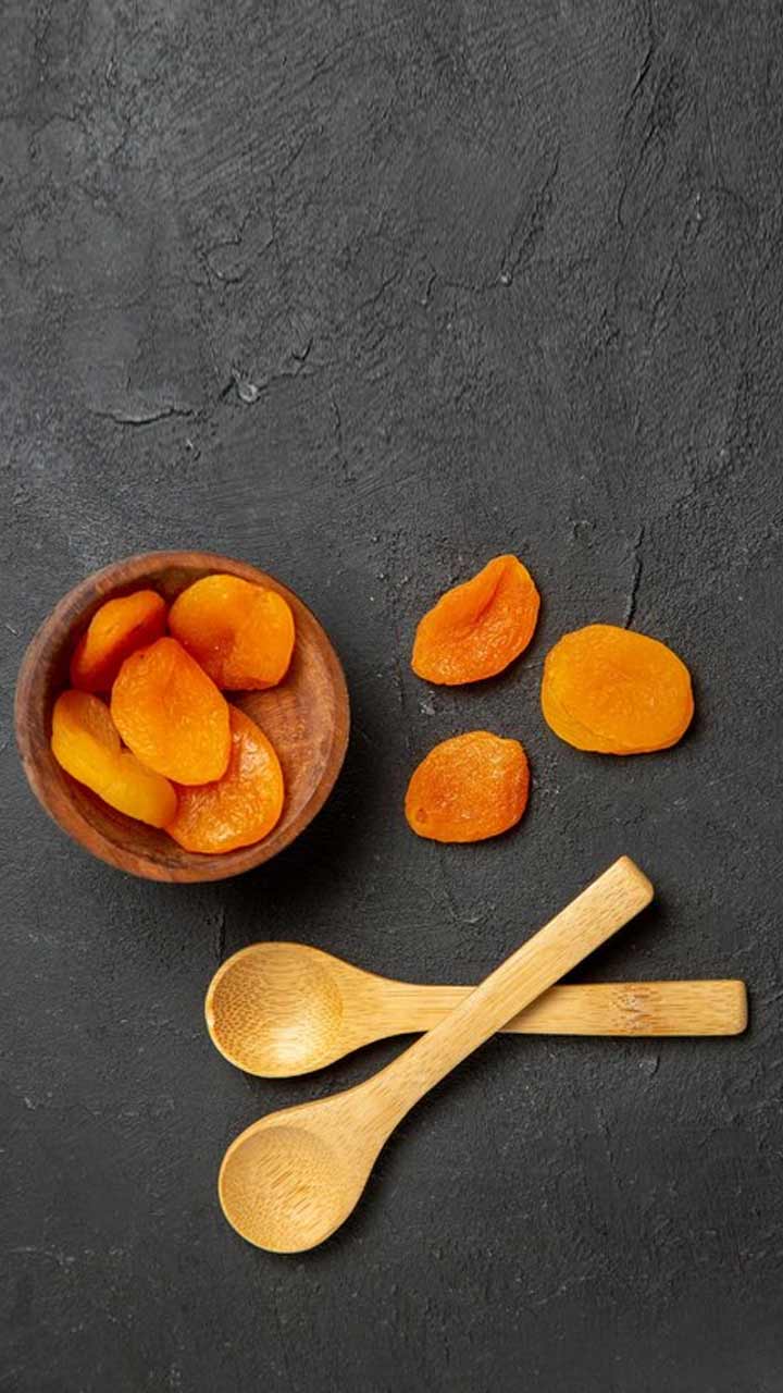 Dried apricots contain fibre and essential vitamins, including vitamin E. This helps in cholesterol regulation and digestion. It even enhances skin and hair health.