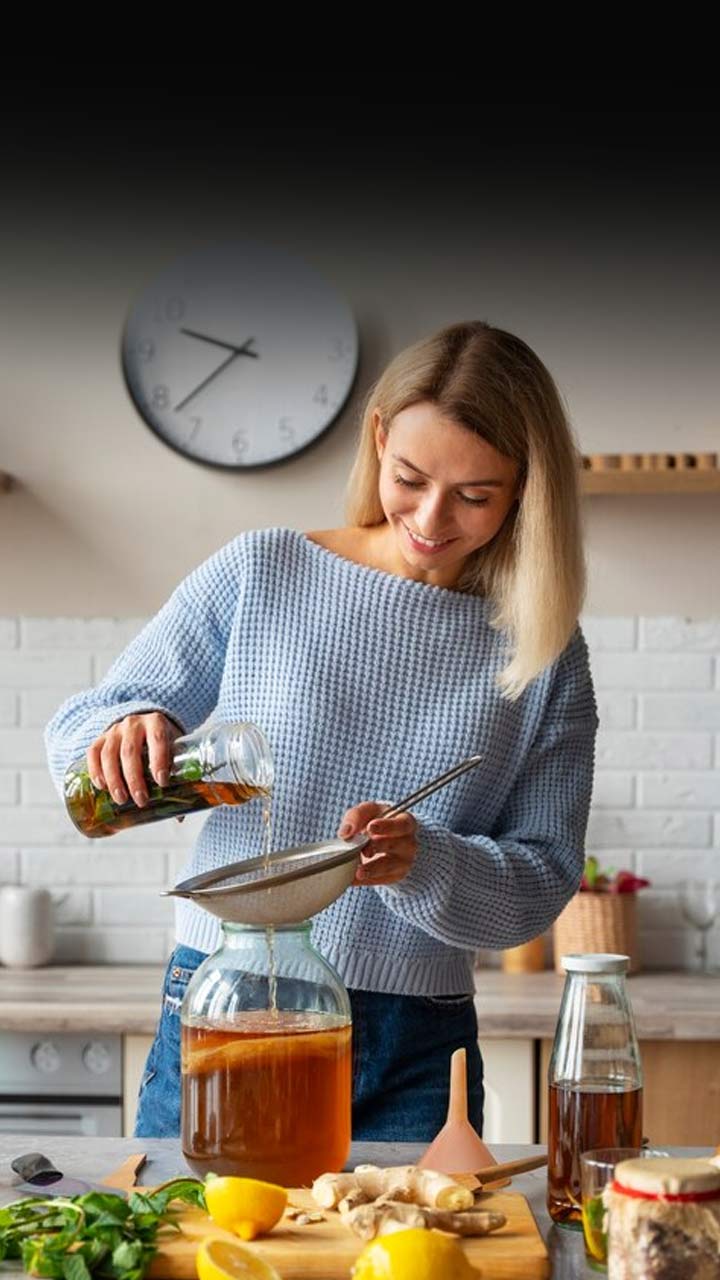Kombucha is a probiotic-rich fermented tea drink. Look for kinds that contain live cultures and have a low sugar level. Enjoy it as a relaxing drink.