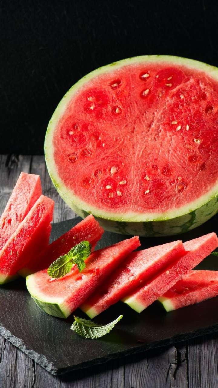 Due to its high water content, watermelon helps prevent dehydration. It is rich in vitamins A and C, which strengthen the immune system and maintain good skin.