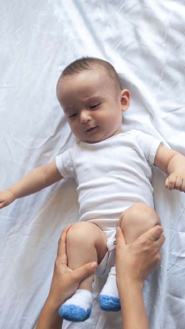 Put the baby on the back and slowly cycle their legs to help move gas and stool through the intestines.