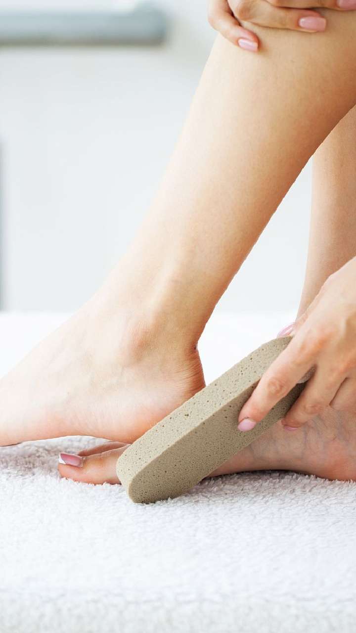 The skin could be softened by soaking your feet in hot water for approximately 15–20 minutes. For additional benefits, add salt or a few drops of essential oils.