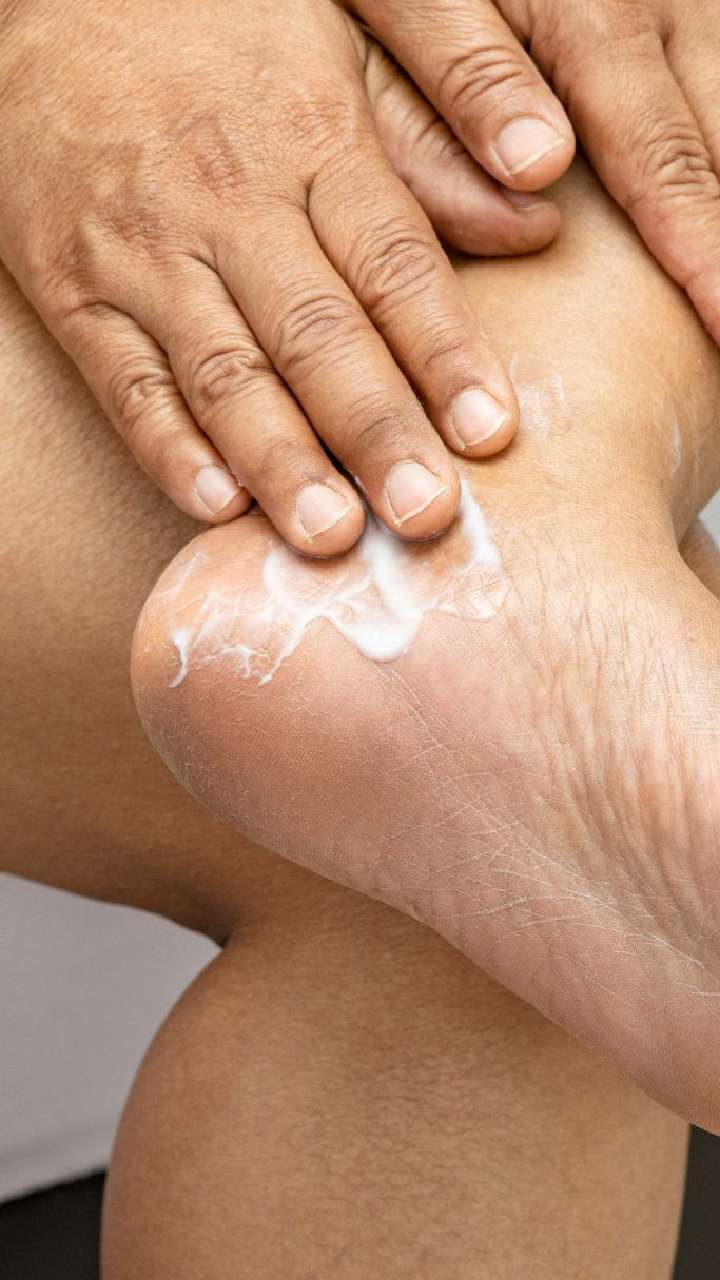 Use a thick moisturiser or foot cream every day, mostly right after you shower. Ensure that you buy products containing ingredients such as shea butter, coconut oil, and vitamin E for more hydration.