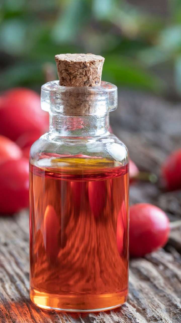 Rosehip oil is rich in vitamin C, and is known for its healing properties. It helps to reduce acne scars and fine lines.