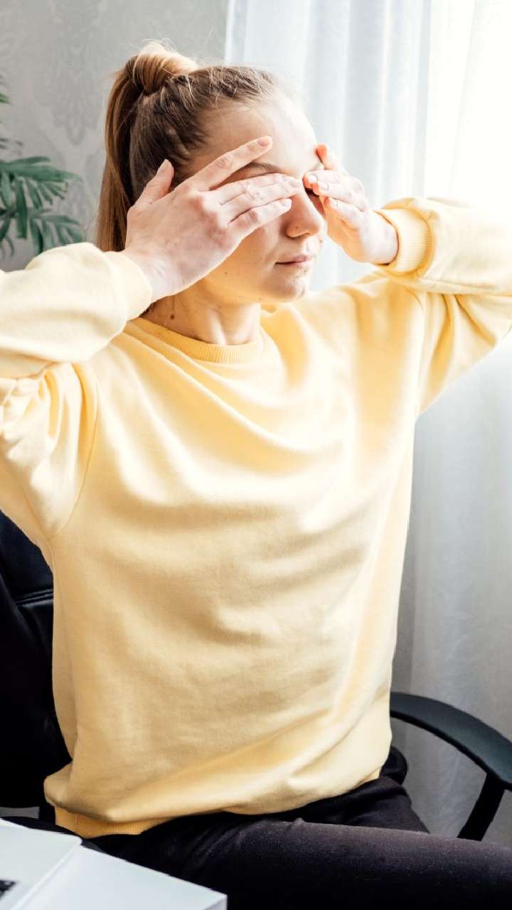 Develop the skill of palming, a simple eye relaxation technique. Rub your palms together and place them over your covered eyes to help relieve muscle tension.